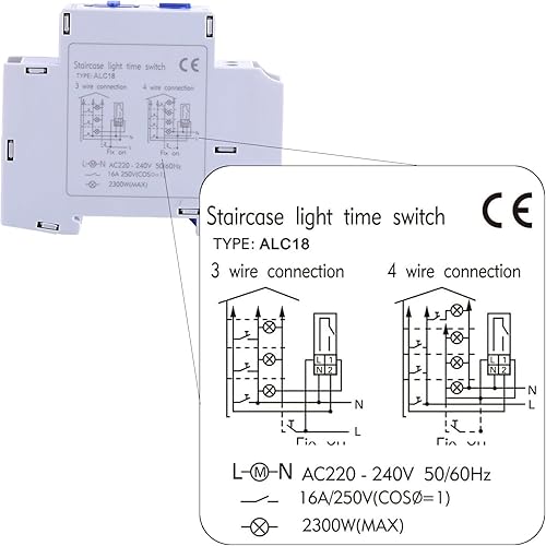 Temporizzatore Luci Scale Temporizzatore AC 220-240V Interruttore Temporizzatore, Meccanico Elettronico a Relè DIN Guida per Casa L'illuminazione di Corridoi