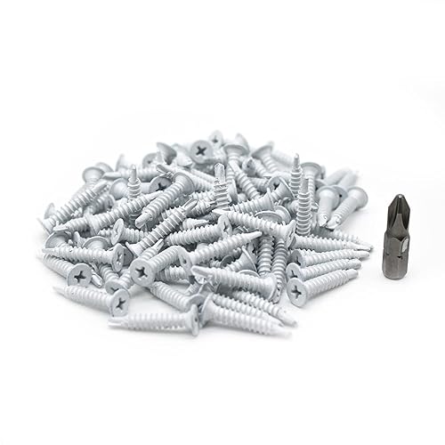 Viti Autoperforanti con Punta PH2 | Autofilettanti Testa Piatta | 4,2 x 14 | 100 pz | Zincato | Bianco | Set Viti per Cartongesso, Viti Autoperforanti per Metallo, Legno, Plastica