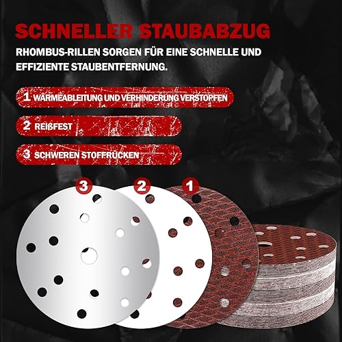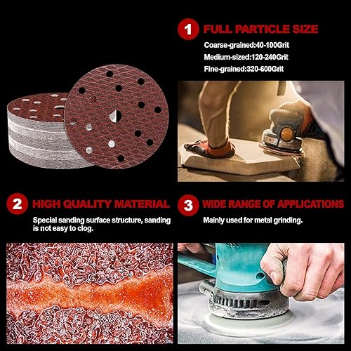 Dischi Abrasivi 150mm, 15 Fori Grana 120 Carta Abrasiva Legno Metallo, Universale per Levigatrice Orbitale (50Pz)