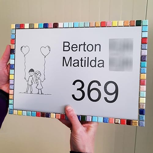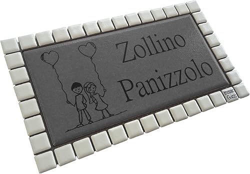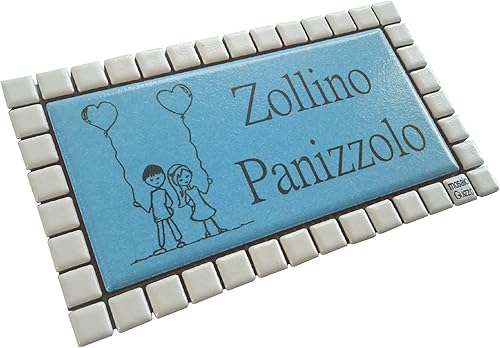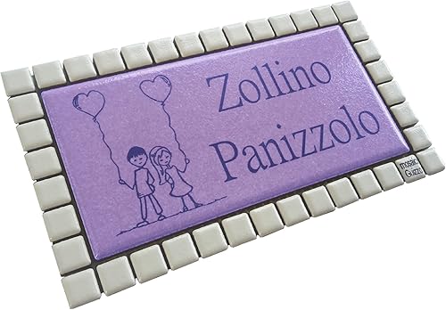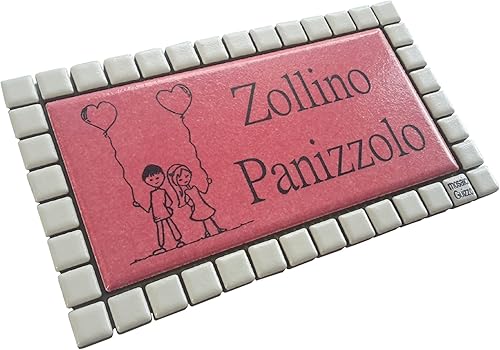 GUIZZO Creart - Targa Personalizzata Nomi/Via in Ceramica, Targhetta Modificabile con Cornice Mosaico, Targhetta Porta Ingresso Numero Civico Esterno Made in Italy 17x9.5H cm, Rosa Scuro/Bianco