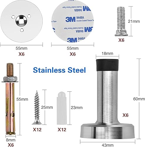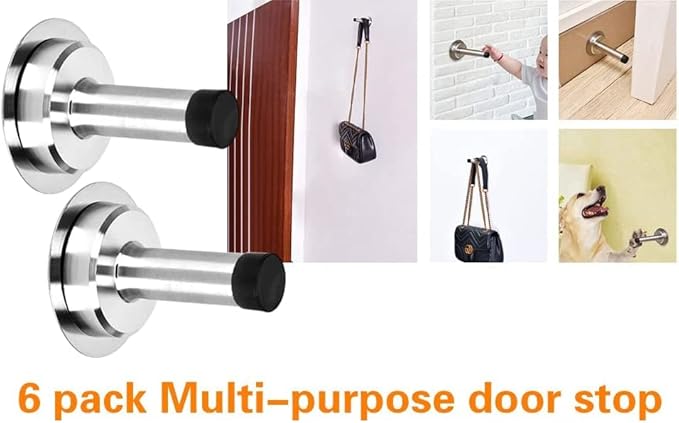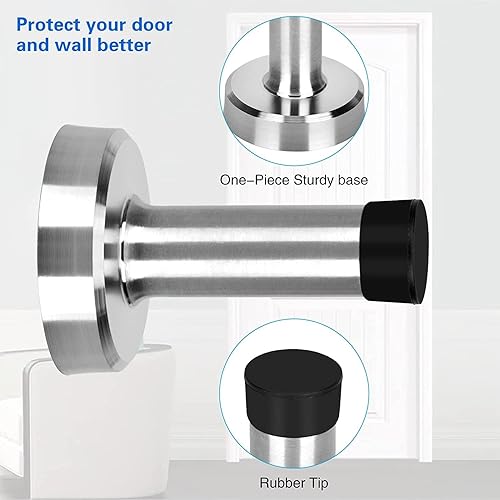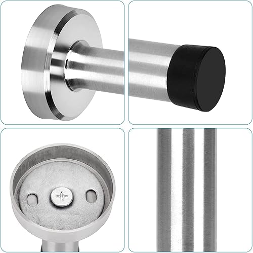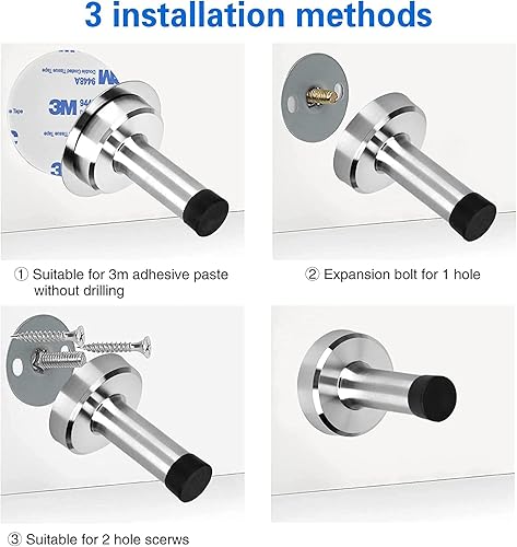 Zoutpy Fermaporta autoadesivi da parete in acciaio inox, senza foratura/viti, con cuscinetto in gomma, protezione da parete, 6 cm