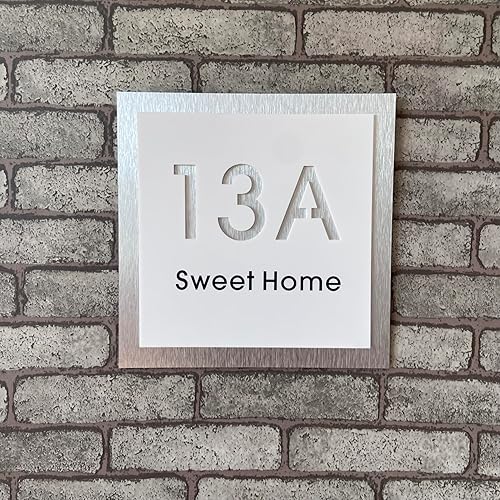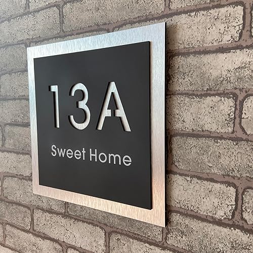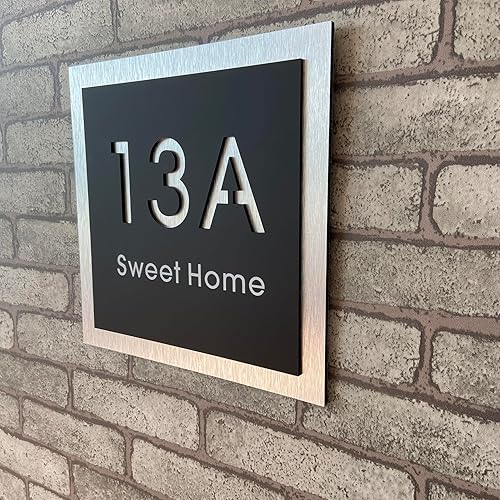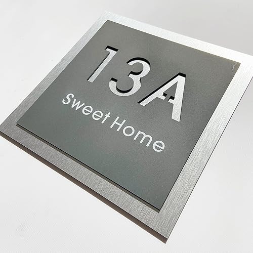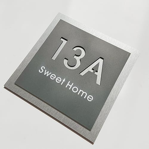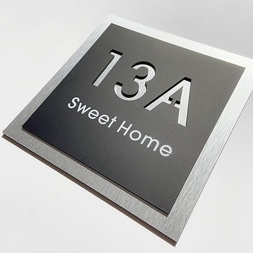 Porte in alluminio composite acriliche personalizzate con numeri di casa e di stampa per esterni in grigio antracite, nero e bianco - numero di strada per casa, hotel, negozio, appartamento
