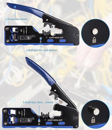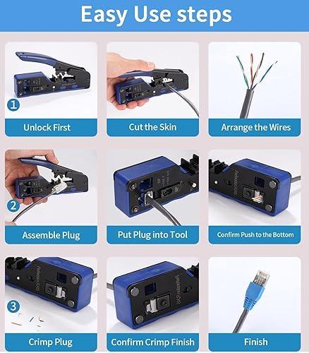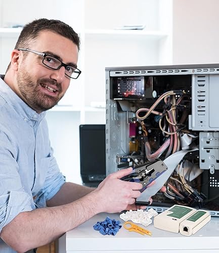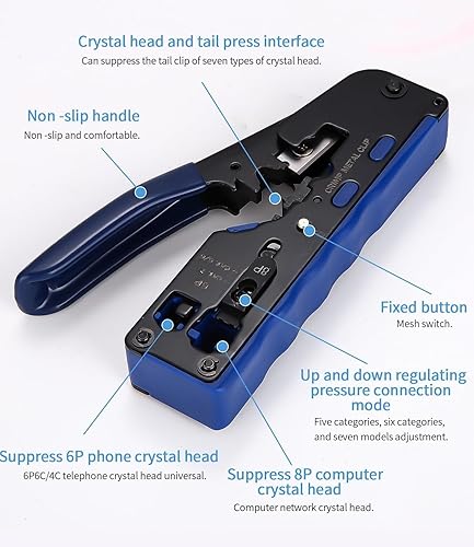 Set di pinze a crimpare RJ45 Pinze a pressare per pinze a crimpare RJ45 con tester di rete, connettori da 50 pezzi, spelafili per set di strumenti di rete 8P RJ45 Cat6 Cat5 Cat7