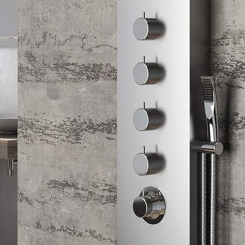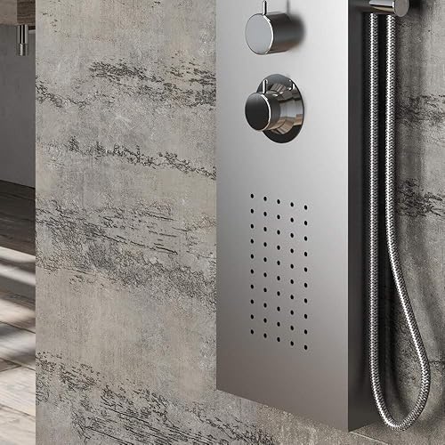 Colonna Doccia 004 Termostatica Acciaio Inox 4 Funzioni Getto A Cascata 2 Bocchette Idro Lombari L20xP44xH165