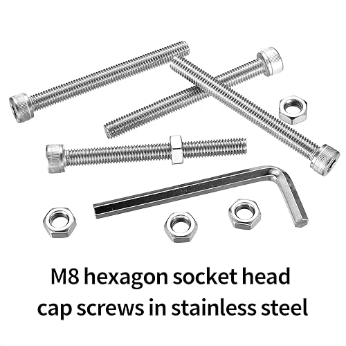 16 Pz Set di Viti M8 x 80mm, Viti Bulloni e Dadi, Vite a Testa a Esagonale, Bulloni Viti a Testa Esagonale Incassata, Viti a Testa Bombata con Esagono Incassato, Viti a Testa Brugola in Acciaio Inox