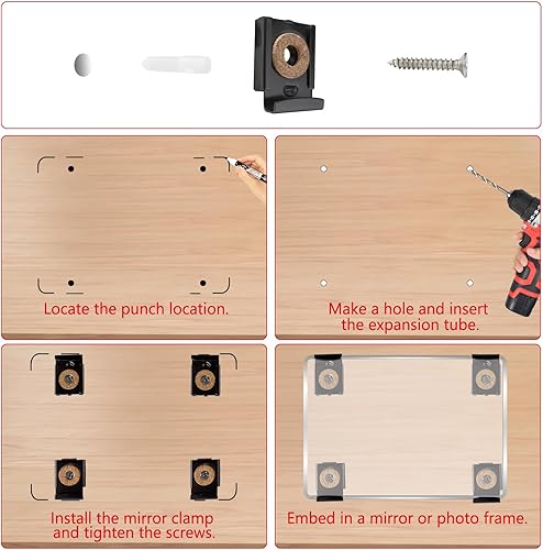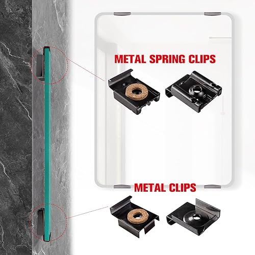 3 Set (12 Pezzi) Clip Specchio Set, Clip Specchio a Molla Gancio Specchio, Fissaggio a Parete in Vetro a Specchio Senza Cornice, con Tasselli e Viti, per il Montaggio di Specchi, Nero