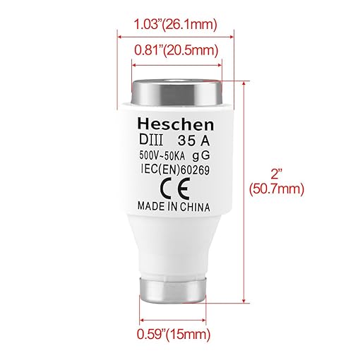 Collegamenti di fusibile neozed in ceramica, Link fusibile tipo DIII, 35A 500VAC, tipo gG, per la protezione di cavi e linee, confezione da 5