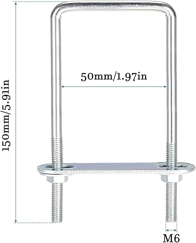 M6x50x150mm Quadrato U Bullone x 1 Set Carbonio Acciaio U Bullone per Asse e Rimorchio Foglia e Tubo, [Argento Tono]