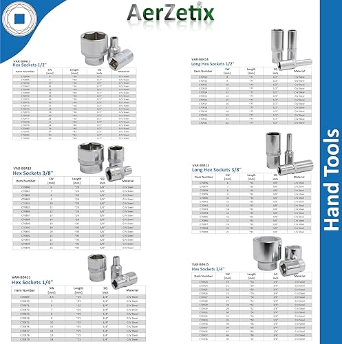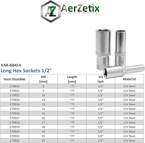 C70918 - Chiave a bussola lunga 1/2' corpo 17mm x 77mm - chiave a cricchetto - con impronta esagonale 6 lati - in acciaio CR-V - colore argento