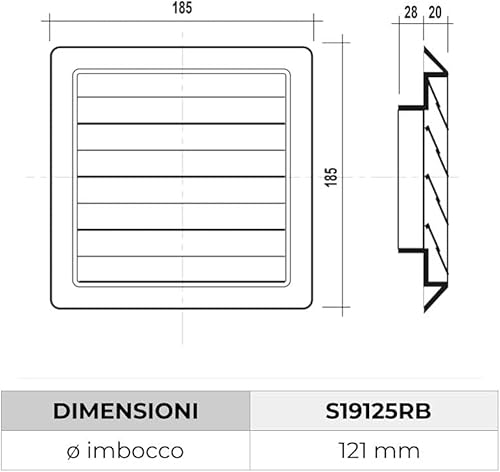 La Ventilazione S19125RB Griglia di ventilazione da Sovrapporre in ABS, Bianco, con Alette a gravità e rete antinsetti. Dimensioni 185x185 mm