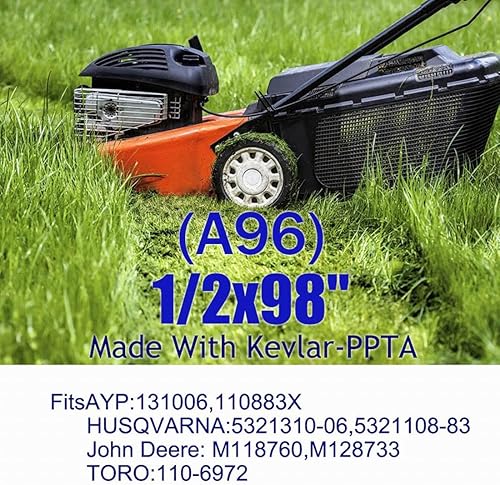 Cinghia di ricambio in Kevlar della cinghia del piatto del tosaerba per A/YP: 131006,110883X, PER H/USQVARNA: 5321310-06,5321108-83, PER J/ohn Deere: M118760, M128733, TORO: 110-6972 (1/2x98') ( A96)