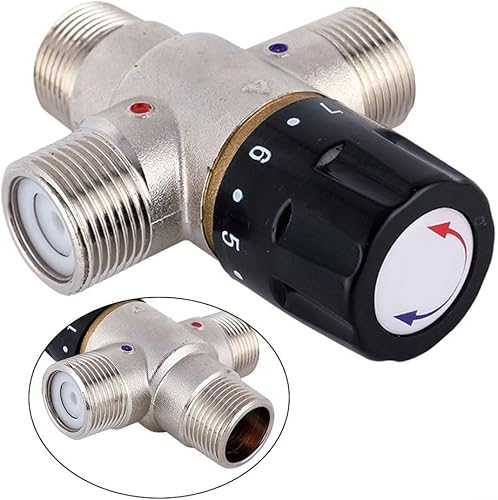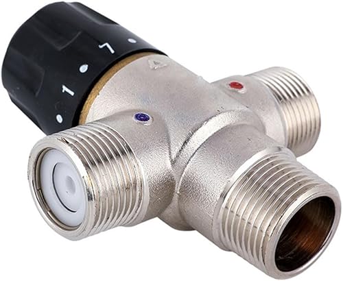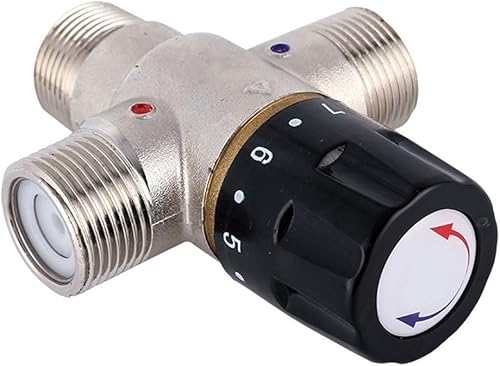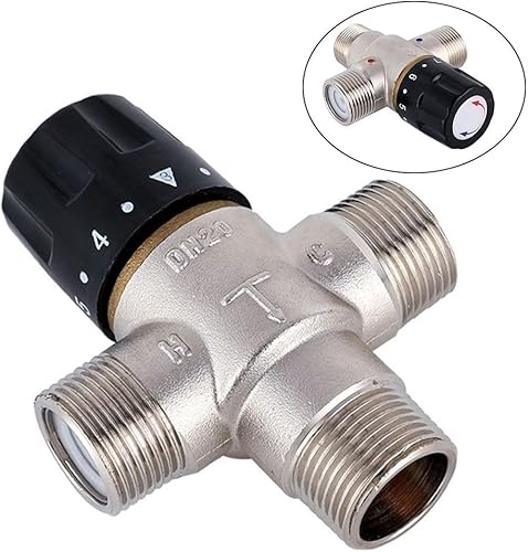 Lioaeust Valvola miscelatrice termostatica DN20 per riscaldamento solare da 3/4 di pollice, Termostatica, Rame, Argento + Nero