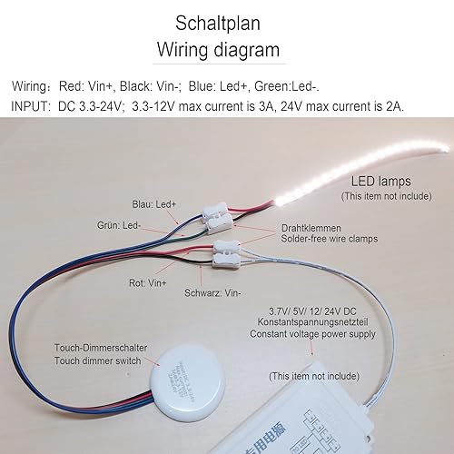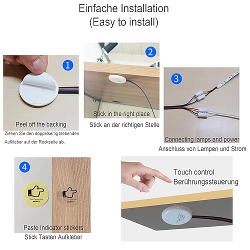 Interruttore touch LED da 12 V, nascosto, DC 3,7 – 24 V, 3 A, interruttore touch per barra luminosa a LED Smart Home, penetra in legno, pietra, vetro, ecc., senza fori necessari (bianco)