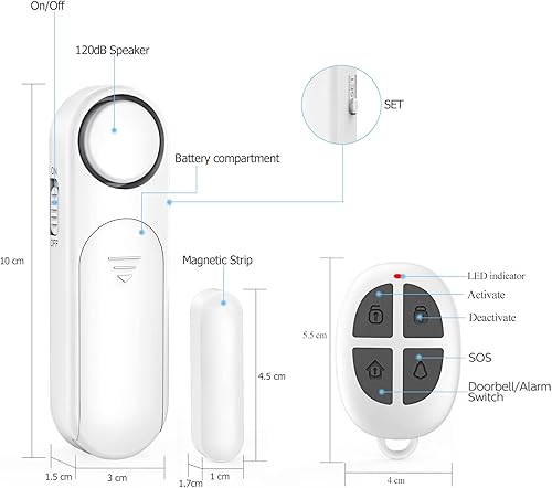 SECRUI Sensore Porta, Allarme Finestra e Porta 120dB Sensore di allarme porta con 2 telecomando Magnetico Allarme Casa Senza Fili per Antifurto Sistema Sensori di Sicurezza Domestica per Negozi