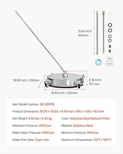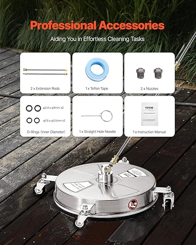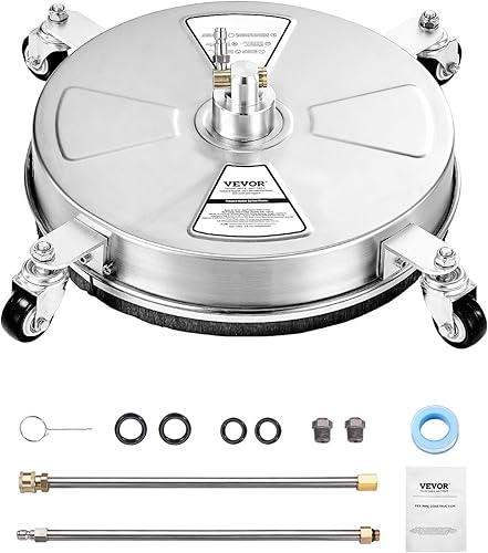 VEVOR Idropulitrice per Superfici in Acciaio Inossidabile con 4 Ruote, 275,8 Bar Max, Connettore Rapido da 1/4, 2 Ugelli a Spruzzo, 2 Lance Estese, per Cemento, Patio, Marciapiede 430 mm