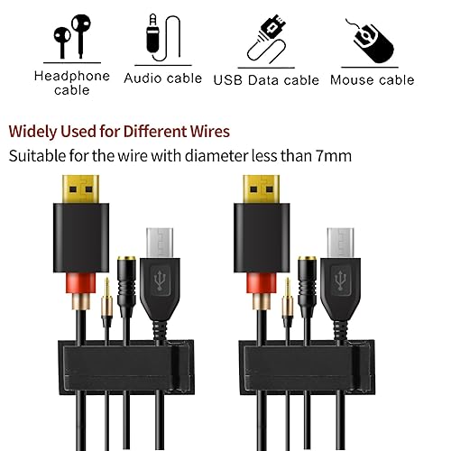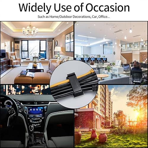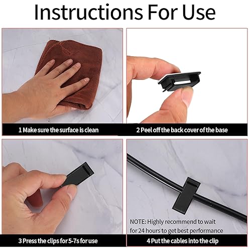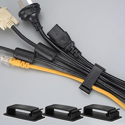 60 clip per cavi autoadesive, per cavi, per ufficio, cavo piatto, nero