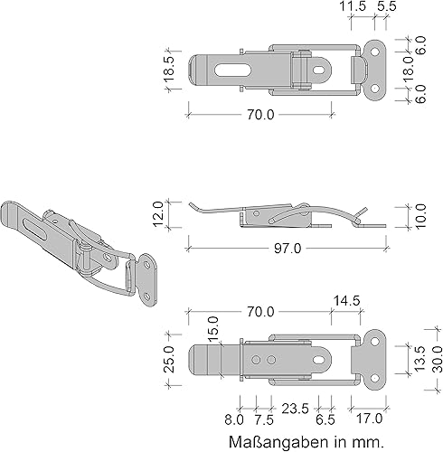 Gedotec, chiusura a leva in metallo con controparte, serratura per cassetta da avvitare, in acciaio brunito opaco, 2 pezzi