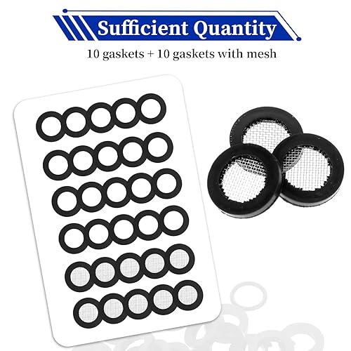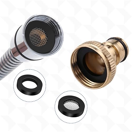 Set di 20 anelli di tenuta, 1/2 pollici, 10 anelli di tenuta, con 10 pezzi di rete filtrante, guarnizioni per rubinetto (20 pezzi di colore nero)