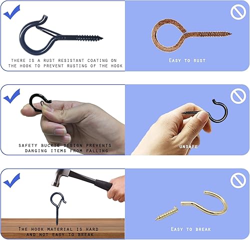 25 Pezzi Ganci Q-Hanger con Fibbia di Sicurezza, Ganci a Vite Nero, Ganci Avvitabili, Ganci a Soffitto a Vite in Metallo per Appendere Piante, Campanelle, Catene Luminose Decorazioni