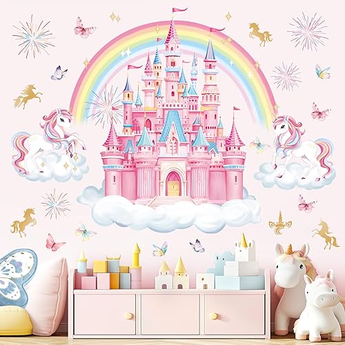 Adesivi Murali Arcobaleno Castello Grand Adesivi da Parete Arcobaleno Unicorno Farfalla Nuvole Decorazione Murale Camere Ragazze Camerette Bambini Asilo Nido
