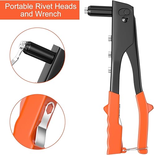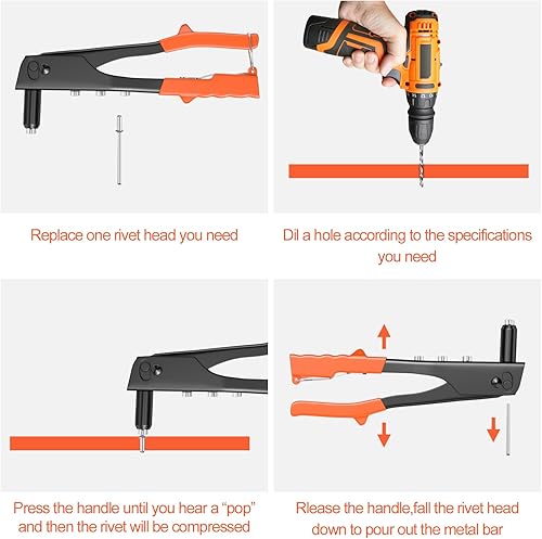 Rivettatrice Manuale, Rivettatrices Professionales per Rivetti, Kit Pistola a Rivetti 4 Teste, Spararivetti, Set di Pinze per Rivettis, Contiene 200 Pezzi di Rivetti e 4 Punte da Trapano