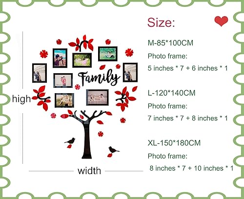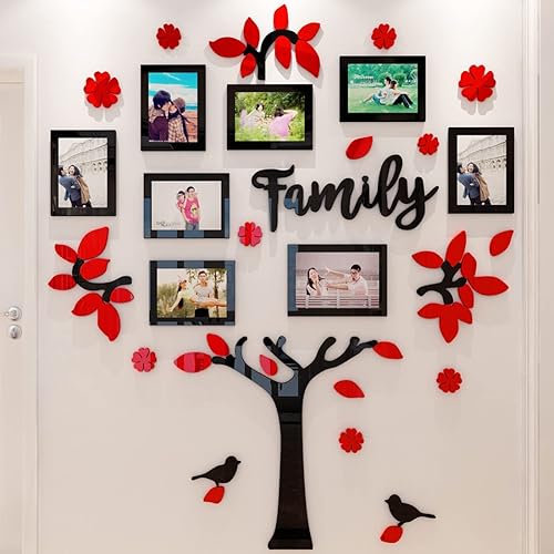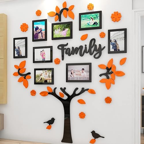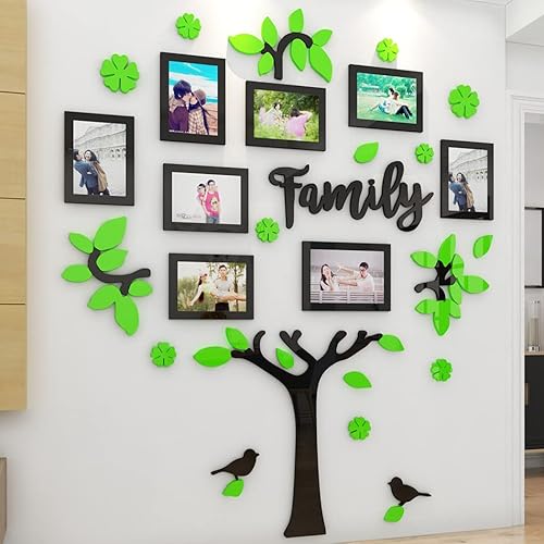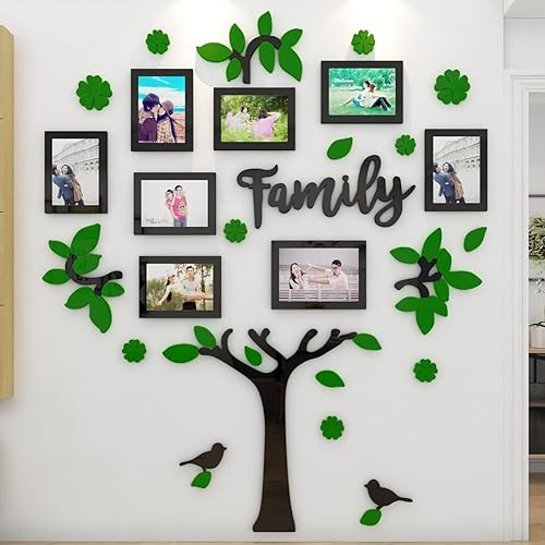 Adesivo Murale 3D Albero Famiglia - Decorazione da Parete con Cornici Porta Foto per Soggiorno - Sticker Foglie Photo Wall