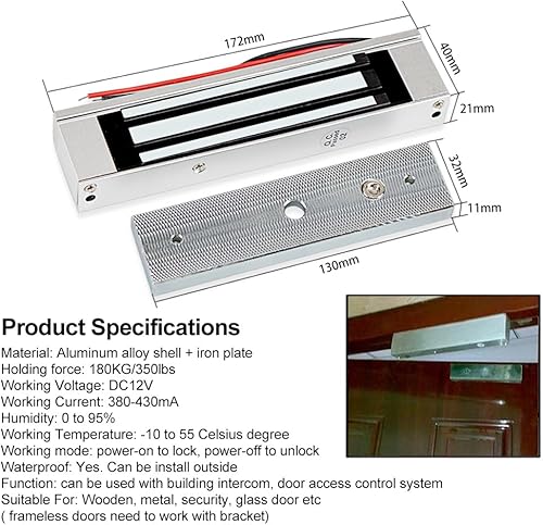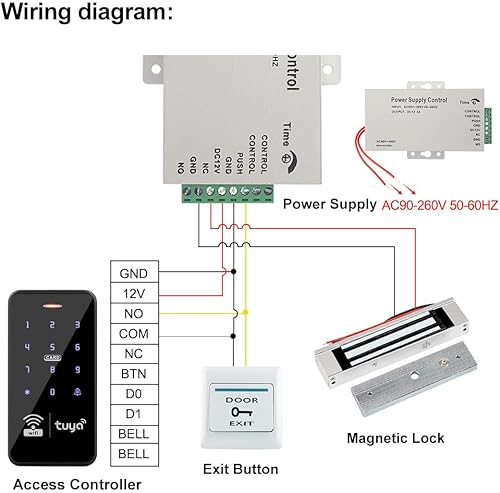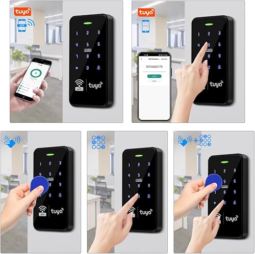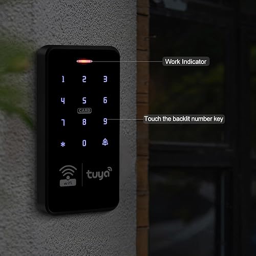 Tuya - Kit di controllo accessi impermeabile per esterni, wireless, WiFi, RFID, tastiera, retroilluminazione, controller touch + 15 portachiavi da 125 kHz + blocco elettromagnetico da 180 kg