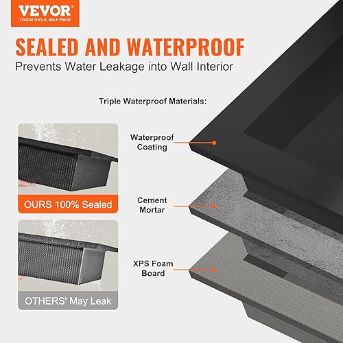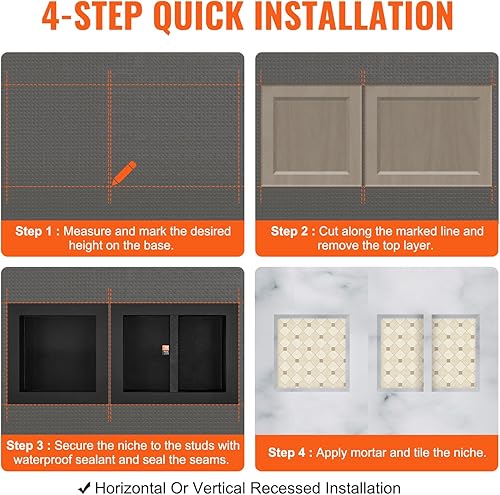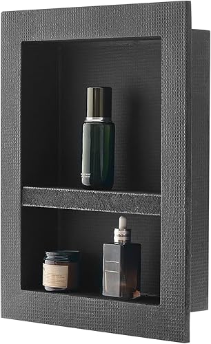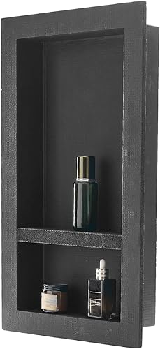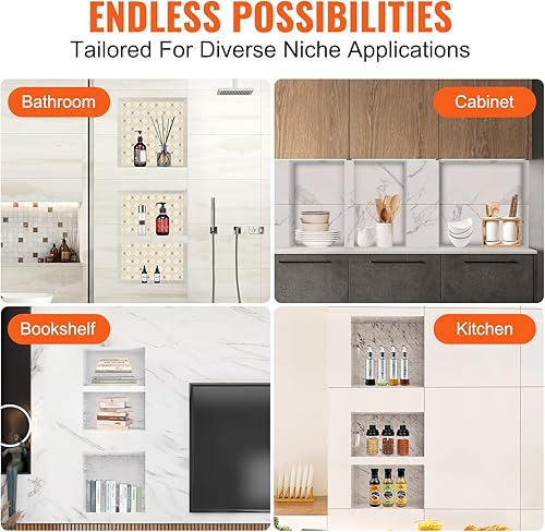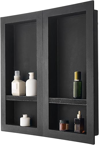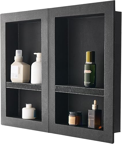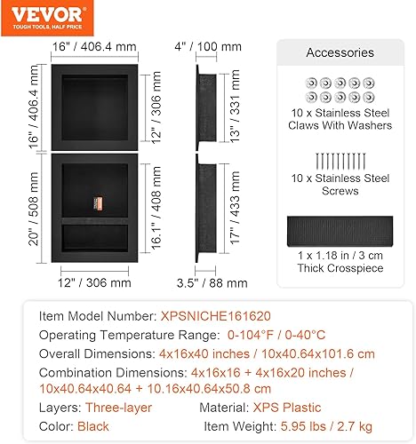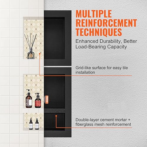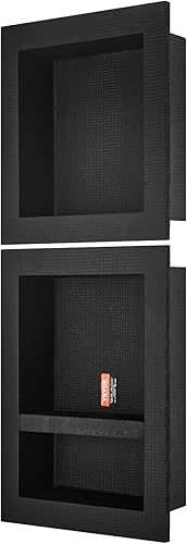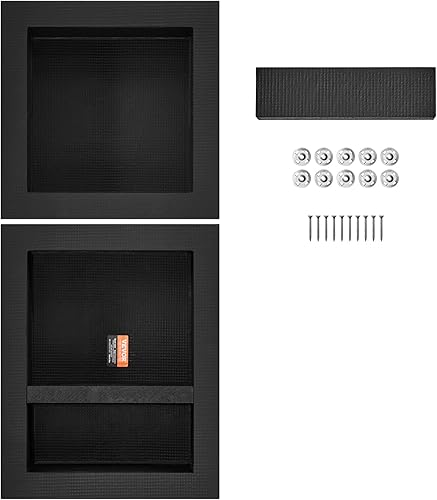 VEVOR Nicchia per Doccia, 40,6 x 50,8 x 10,2 cm con Ripiano Divisorio Mobile, Moderno Contenitore per Sapone, Angoli Squadrati, Nicchia Doccia Impermeabile Sigillato in Plastica, Nero