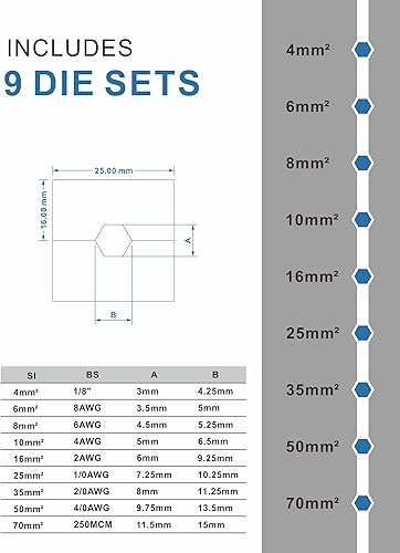 AMZCNC 10 tonnellate 9 muore piegatrice idraulica, strumento di piegatura idraulico 4-70mm², piegatore terminale dell'ansa del cavo della batteria del cavo