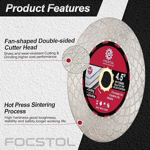 Disco Diamantato per Piastrelle 125mm - FOCSTOL Doppio Lato Taglio Macinazione Lama Diamantata per Porcellanato Ceramica Marmo Granito Pietra Artificiale