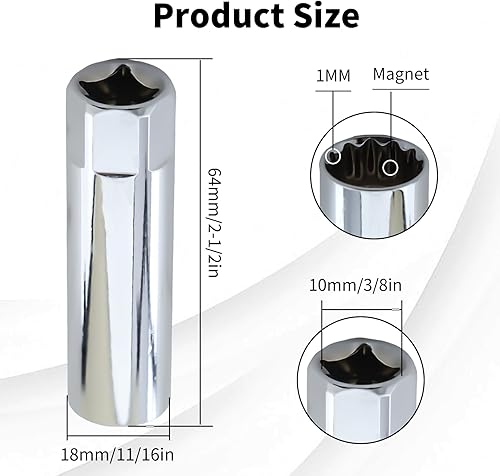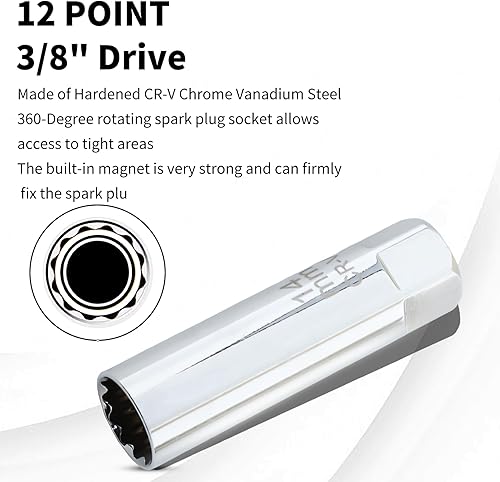 Boccola di candela di accensione magnetica 14 mm,universale magnetica chiave a candela accensione,3/8' Cle candele auto dodici Pans portalampada a candela girevole a parete sottile con candela