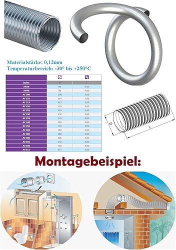 Tubo flessibile, 2,60 m, in alluminio, Ø 200 mm, resistente al calore