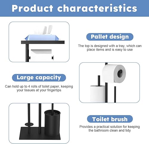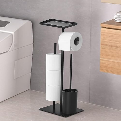 Porta carta igienica in acciaio inox con scopino per WC – Porta carta igienica con scatola per salviette umide, porta carta igienica con spazzola per WC, set per WC con porta carta igienica e scopino