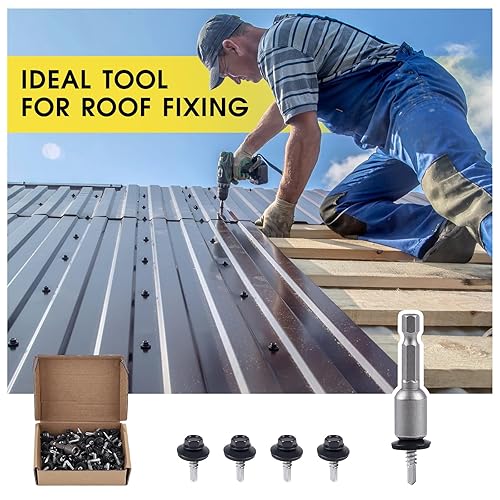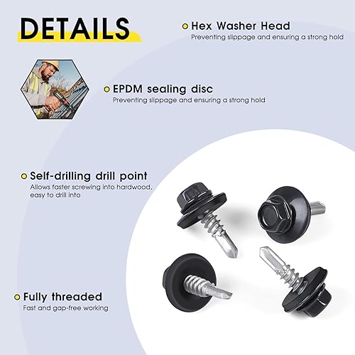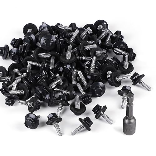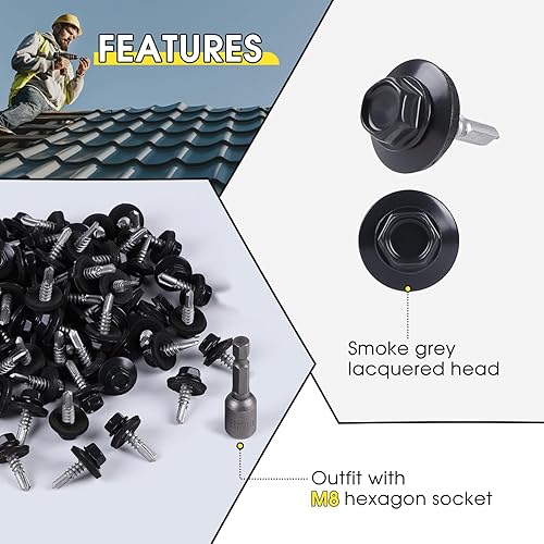 Confezione da 100 Viti autoperforanti per metallo Ø4,8x19 mm Testa a rondella esagonale verniciata Viti autoperforanti verniciate con rondelle in EPDM e chiave a bussola M8 (Grigio RAL 7016)