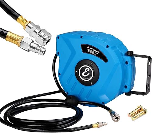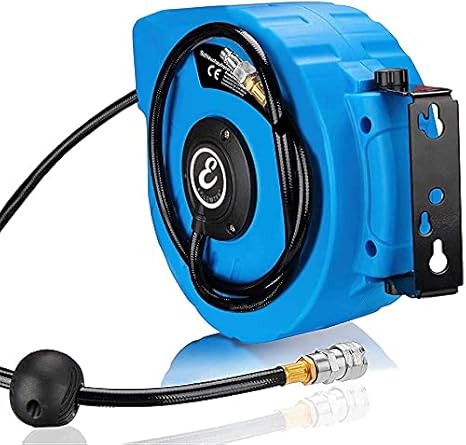 Avvolgitubo Aria Compressa Fissaggio A Parete Salvaspazio Tubo Accessorio Compressore Aria Con Giunto Rapido 1/4' Riavvolgitore Automatico E Auto-stop Pressione Max 24 Bar Azzurro (Tubo 10 mt)