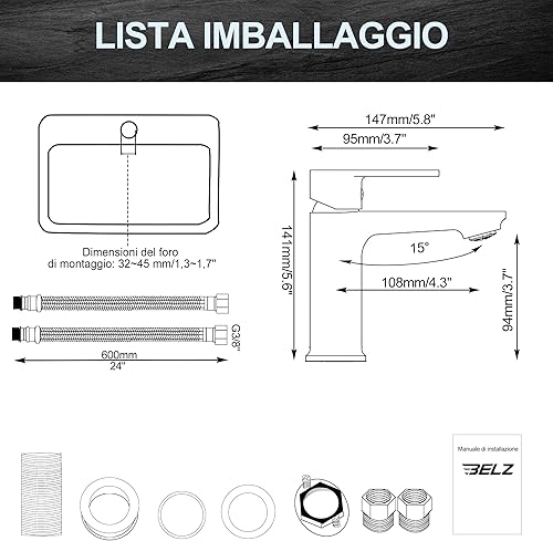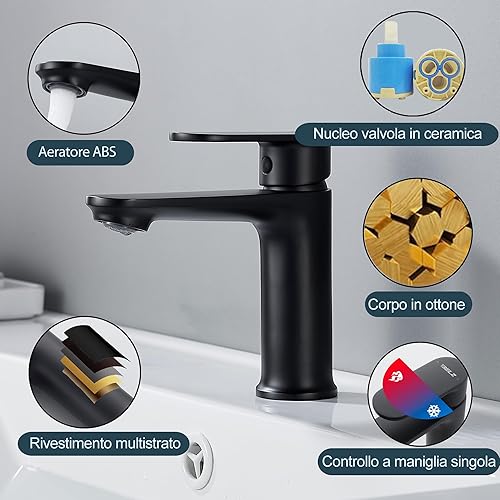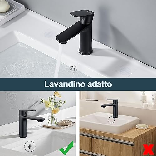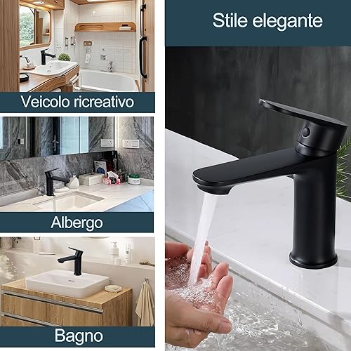 Rubinetto Lavandino Bagno Monocomando, Miscelatore Moderno per Lavabo, Rubinetto da Bagno Elegante, Facile Installazione (Cromo)