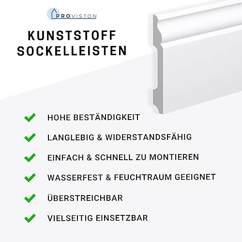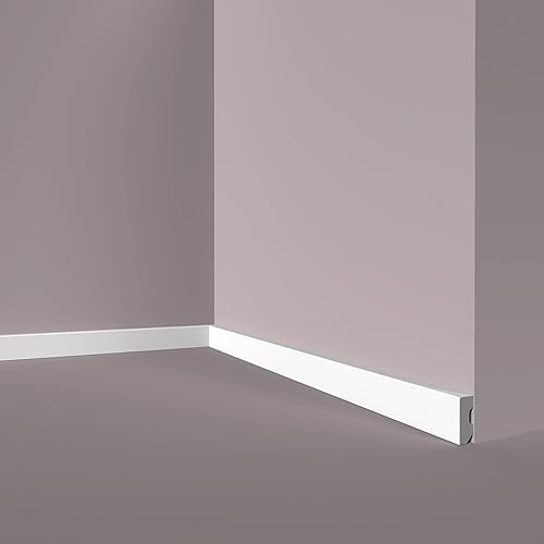 Battiscopa 16 x 60 x 2000 mm, battiscopa moderno profilo quadrato di alta qualità, in plastica bianca, impermeabile, robusto e durevole
