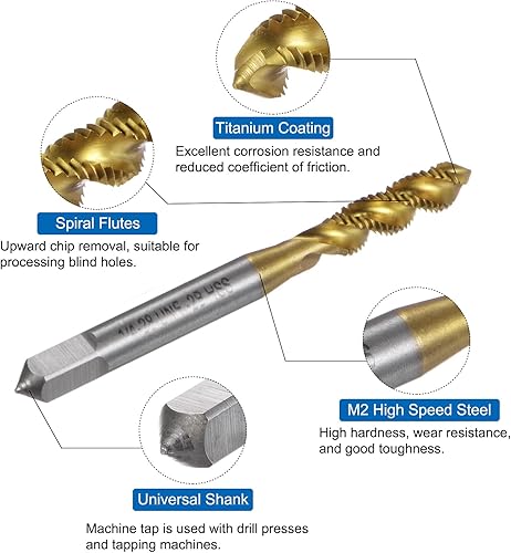 Filettatura Spirale con Flauto, Maschio Spina Filettato 1/4-28 Unf 2B, Utensili Filettatura Acciaio Alta Velocità 6542 Rivestiti Titanio per Riparazioni Meccanica