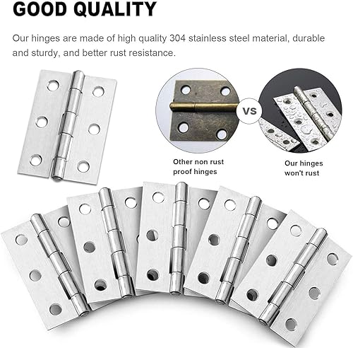 Cerniere in Acciaio Inox 8PCS, 75mm × 50mm Cerniere Porte Legno, Cerniere Inox, Cerniere in Acciaio Inossidabile, Cerniere per Mobili, Cerniere Inox Nautica, Cerniere Pieghevoli