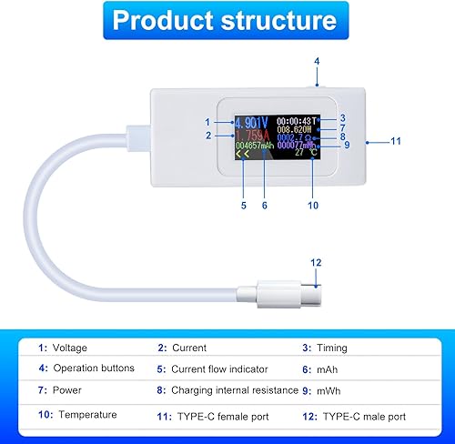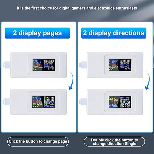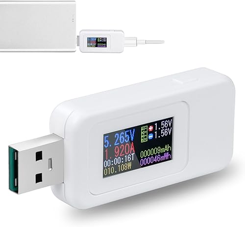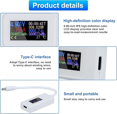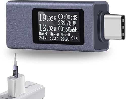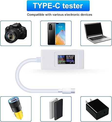 DC 4-30V 0-6.5A USB C Tester Misuratore di Potenza, Voltmetro Amperometro per Ricarica del Telefono (Type-C)