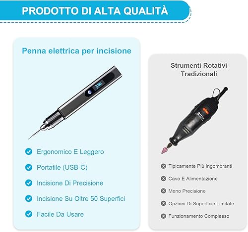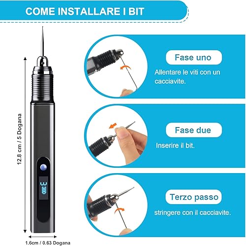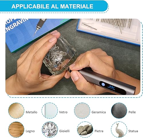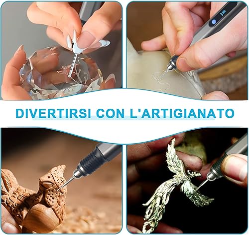 Penna per incisione con 30 punte, penna da incisione ricaricabile via USB mini macchine da intaglio professionali strumento rotante portatile fai-da-te per gioielli, legno, vetro, metallo, plastica