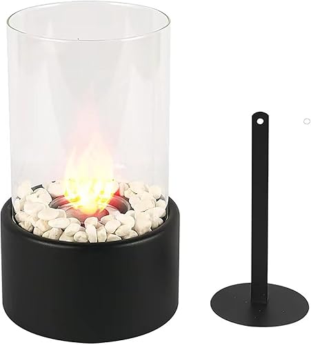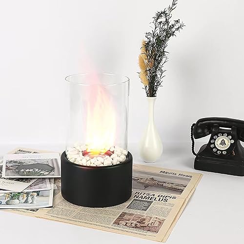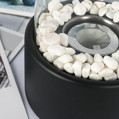 Portable Table Fire Pit, Round Table Top Firepit con Pannelli di Vetro, Mini Fire Pit Table Top Decor per Interni,Nero