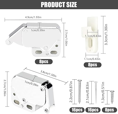 8 Pezzi Scrocco a Molla Per Armadi, Mini Fermo a Molla, Push Serratura con Chiusura a Molla, Scrocco a Molla per Armadi e Ante Armadio, con Viti