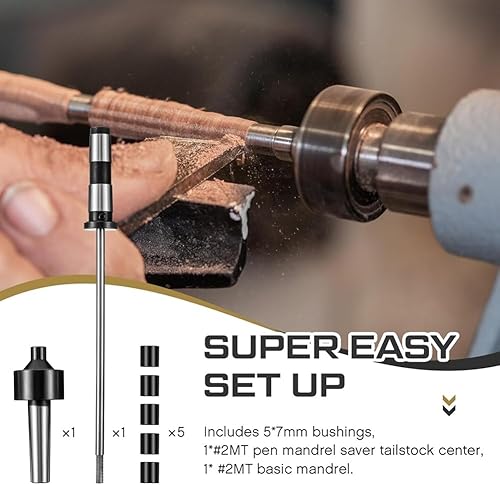 Mandrino Penna da 2MT per Utensile Rotante A Penna per Tornio per Legno con Salvamandrino e Kit Cilindro Penna Rotante In Legno con 5 Boccole
