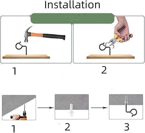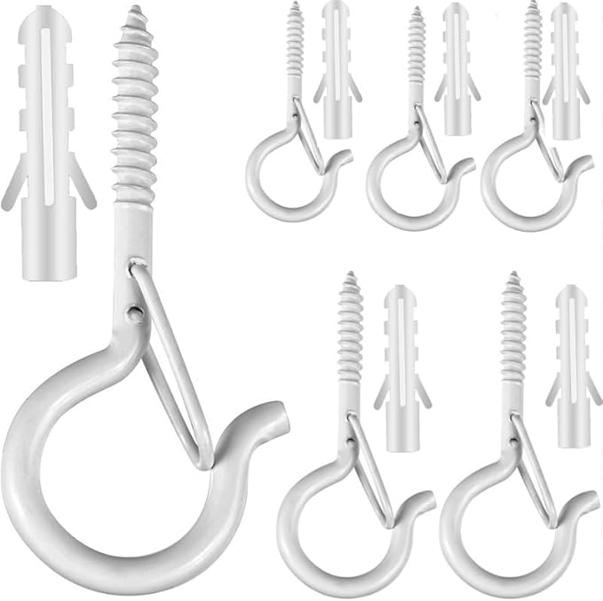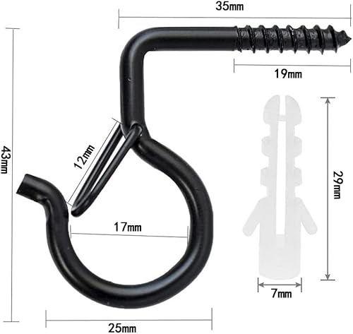 10 viti nere Q-Hanger, ganci da parete per montaggio a parete, ganci a vite a sgancio facile, ganci per piante da parete, gancio per luce natalizia con fibbia di sicurezza