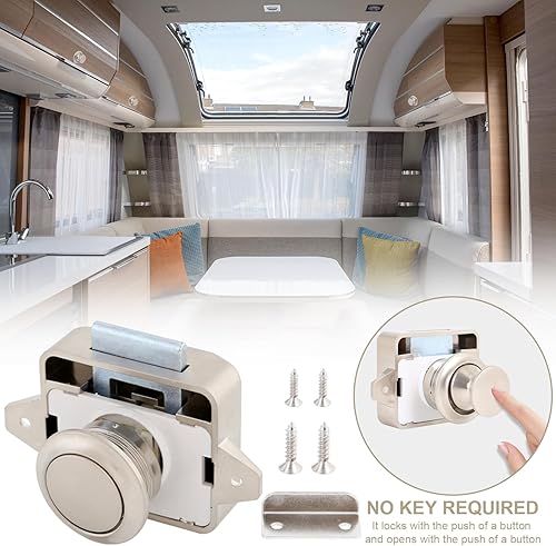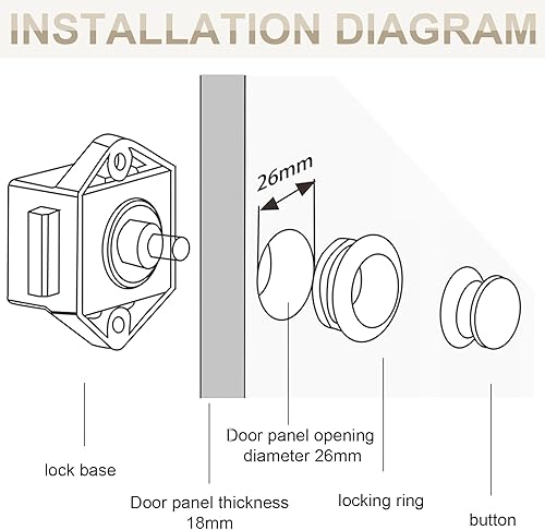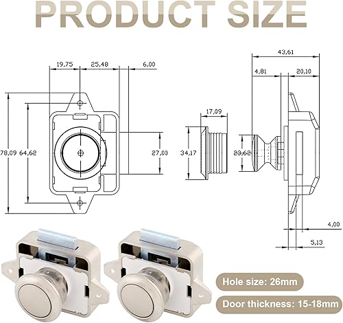 2 Pezzi Serratura a Pulsante Per Porta 15-18mm, Serratura Per Mobili Con Pulsante Di Bloccaggio, Senza Chiave Apparire Chiusura Della Porta a Pulsante, Per Porta/Armadio/Camper/Yacht (26mm Buco)