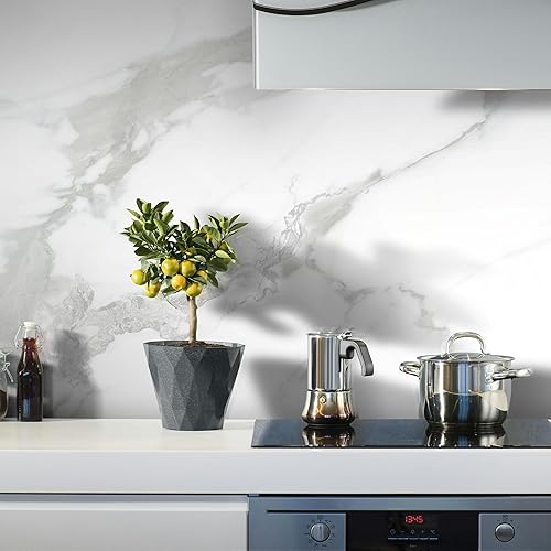 sunwings Pannello da parete impermeabile effetto marmo, 299,7 x 119,4 cm, finitura lucida oro Calacatta, pannello da parete in vinile, per cucina, bagno, decorazione da parete, copre 38,75 mq.