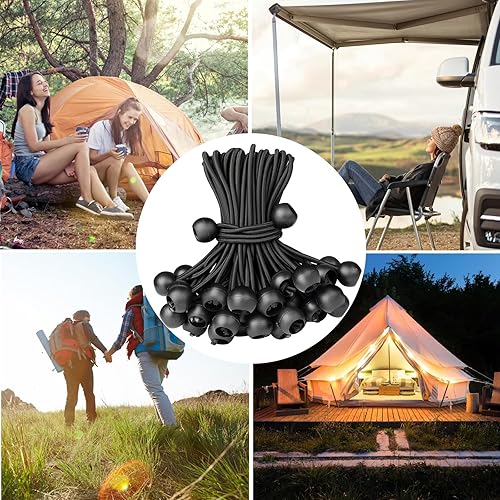 50 Pezzi Elastici per Telone, Corde Elastiche con Sfere, 15CM Cordino Elastico con Pallina, Elastici Portapacchi Neri, Corde Elastiche per Tensostrutture, Teloni, Teloni da Campeggio