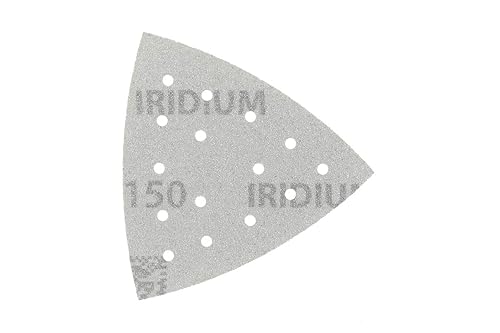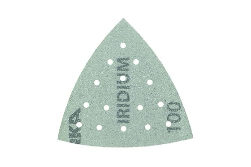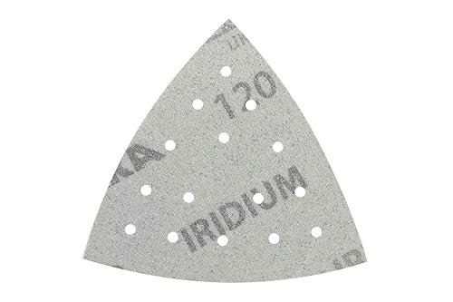 Mirka Iridium Triangolo di levigatura Carta abrasiva Premium 93x93x93mm a strappo a 15 fori, grana 100, 50 pezzi/Per la levigatura di vernice, stucco, fondo, legno, acciaio