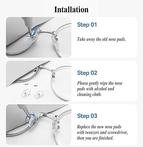 Naselli Antiscivolo per Occhiali,Cuscinetti Nasali Avvitabili per Occhiali Silicone Forma U,Kit di Riparazione Occhiali con Viti Cacciavite,3 diverse dimensioni adatte per occhiali e occhiali da sole